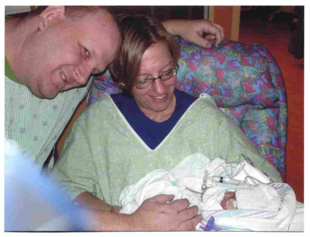 Vicki & Kevin getting to hold Russell for the first time!